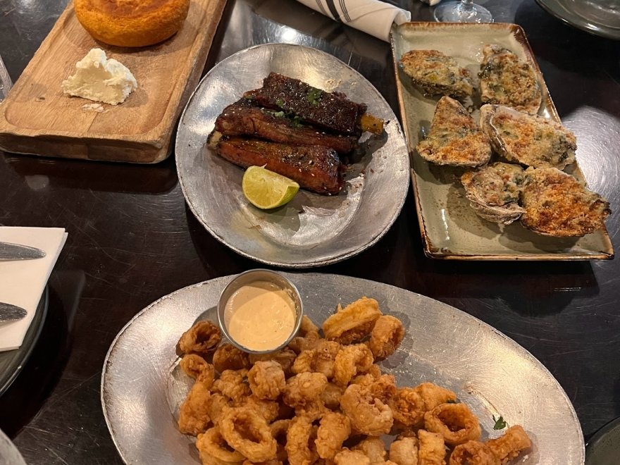 For appetizers, we ordered the Kung Pao Calamari and Crispy Korean Ribs. The calamari is served with carrots, fennel, jalapeño, radish, and lime, all arranged on a sweet and spicy sauce. It was unique and fried to perfection! The ribs were tender, beautifully seasoned, and easily some of the best I've had anywhere.