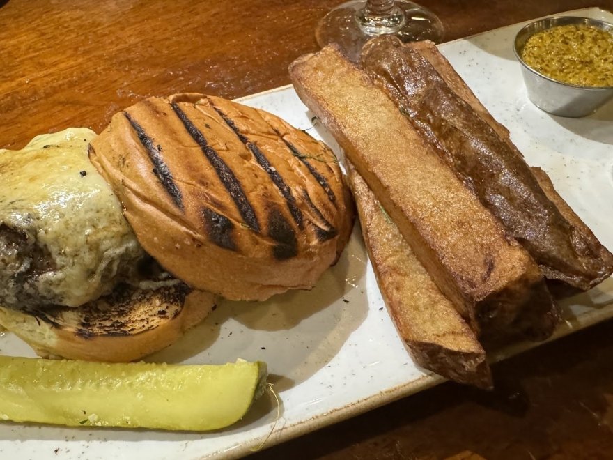 Spur of the moment we decided to walk up for dinner tonight. Was glad we did. Started with the Tasting Board. Good selection of meats and cheese. My main was the Angus short rib french onion pot pie. I was very happy with the portion size and flavor. My wife had the La burger and she said it was fantastic. Our server was very attentive and offered her suggestion on the two dishes I was stuck between.
