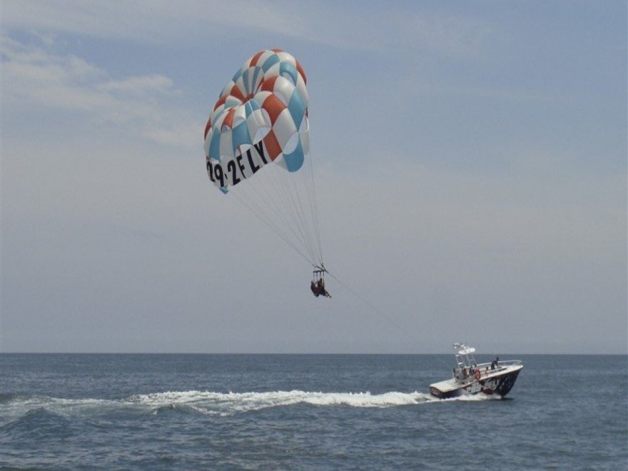 Also, don't miss our ocean parasailing.  Enjoy a boat road out onto the ocean, get strapped in and get the best aerial view of Ocean City!  Soar up to 800 feet in the air.