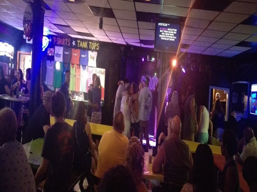 Been visiting Sandbar for over three years... it's my home away from home for karaoke. A real dive bar; expect to encounter inebriated people and to have drinks spilled on you, but remember it's an "experience" and people of all ages come to party, sing, dance and have fun. It reminds me of my college days/frat parties, in a good way... just relax and go with it! The KJ and staff are all really cool people... remember, they're dealing with drunk, argumentative people all night, every night. Most nights things don't really get rolling until after 10, but if you want to sing, come early and put your songs in as soon as you get there- the spots fill up quickly when it gets crowded. Things shut down promptly... (I noticed that is typical in OC in general, unlike at home), so plan accordingly! First time I came here, I was not prepared to leave yet when it ended promptly and found myself not in condition to drive. Security was very helpful in calling me a cab. That kindness and help has not been forgotten!